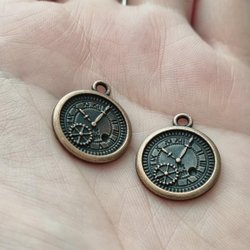 Charm horloges in steampunk, koperkleurige horlogebedels