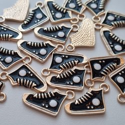 2 zwarte sleutels, emaille hanger/bedels
