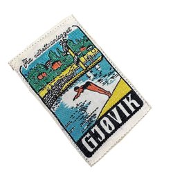 Gjøvik Norge Vintage Stofmerk Oudere Patch Geborduurd ca. 6cm