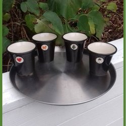 4 glühweinmokken van kunstenaar Kamilla kvarnevik met kleine kerstmotieven