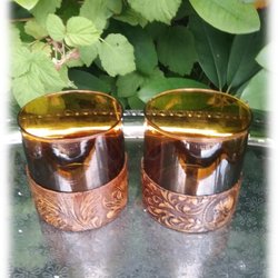 Paar amberkleurige vintage glazen whiskyglazen met omhulsel van hoge klasse