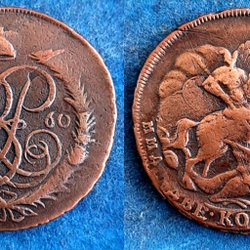 Russian Empire 5 Kopeks Catherine II 1780 E M, VF