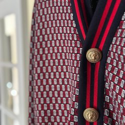Balmain röd/vit/svart cardigan, storlek L