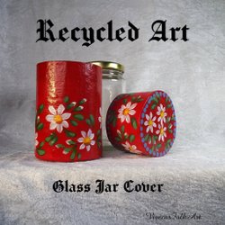 Handgemaakte en handgeschilderde unieke hoes voor glazen pot. (Pot inbegrepen).