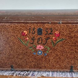 - Mörkt träade sjömanskistor med slitna kanter
