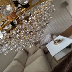 - Glaskronor som kastar gnistrande ljus i rummet