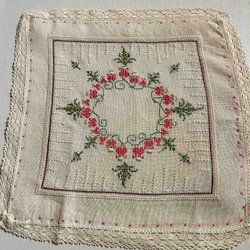 Schattig handgeborduurd doekje met kant ca. 40*40 cm