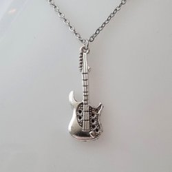 Zilverkleurige ketting (50 cm) van roestvrij staal met bedel - Gitaar