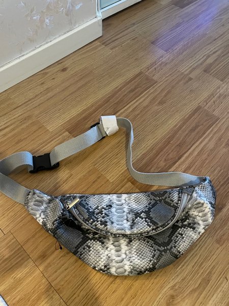 Snygg midjeväska med ett trendigt ormskinnsmönster. Väskan har ett justerbart band med ett spänne.