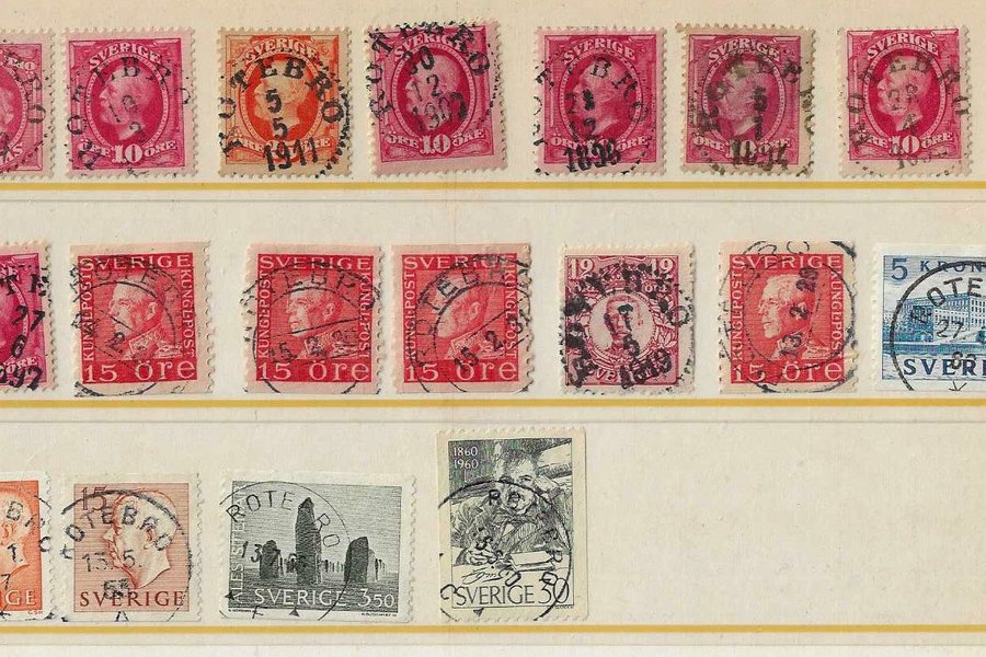 Se foto. Jag styckar upp en accumulation som bl a har använts för upptateringar i STÄMPELDATABASEN. Tidigaste och senaste avtryck relaterar till ny notering i SDB. Det mesta är fullringade, åtskilliga prakt, en del lyx