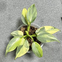 Två (en av dem väldigt liten) välrotade Philodendron ’Silver Sword’