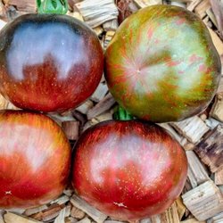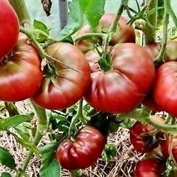 Busktomat som ger stor skörd av rödgula, hjärtformade frukter. Plantan blir upp till 120 cm hög. Behöver bindas och tjuvas.