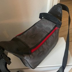 Jag köpte väskan till min Nikon D7000 ock den är alldeles för liten för den (bild 7), så jag fick köpa en större och då blev denna över.