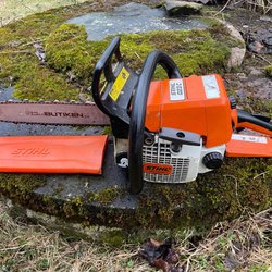 Motorsåg av märket Meec. Modell: Motorsåg Art no 736-004 Ej körd på ca.15 år behov av förgasarrengöring