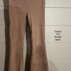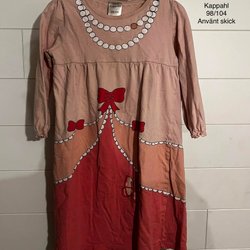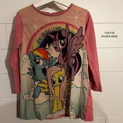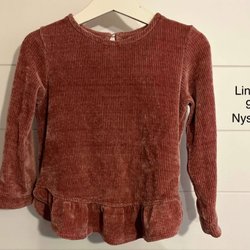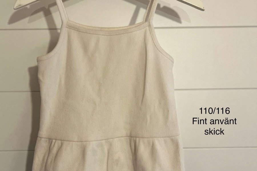 Vit ribbad linne med volang nedtill.