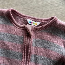 Färgglad handstickad kofta med huva. Koftan är rosa med broderade motiv som sol, moln, djur och växter. Den har en dragkedja fram och fickor.
