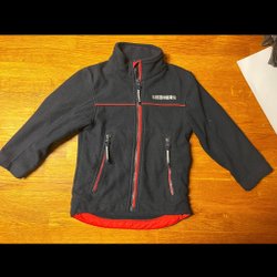 Blå fleecetröja med tryck. Vi är djur- och rökfria i hemmet. Jag samfraktar gärna så passa på att kika på mina övriga annonser. Fråga mig om du undrar något!