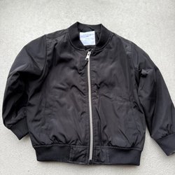 Svart jacka med dragkedja fram och muddar vid ärmslut och nederkant. Jackan har en enkel och stilren design.