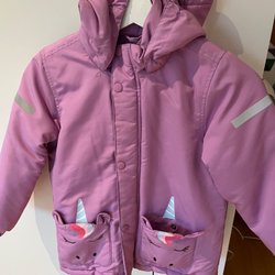 Vadderad lättviktsjacka med leopardmönster och rosa detaljer, från Lindex Kids. Jackan har en huva och dragkedja framtill samt fickor med knapp. Superfin jacka som är använd och blivit lite nopprig vid ärmsluten men annars fint skick.