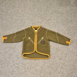 Kamouflagemönstrad i olika grå nyanser. Avtagbar luva, dragkedja med knappar utanpå, två fickor fram och en liten på ärmen.