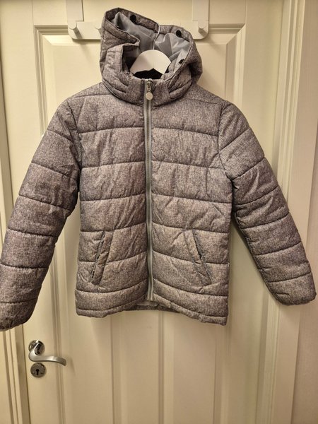 Grå vadderad jacka med luva från HM sport.