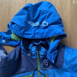 Blå overall från Kaxs Proxtec med svart förstärkning på benen. Overallen har en avtagbar huva, resår i midjan och reflexer på ben och ärmar. 92 fint skick