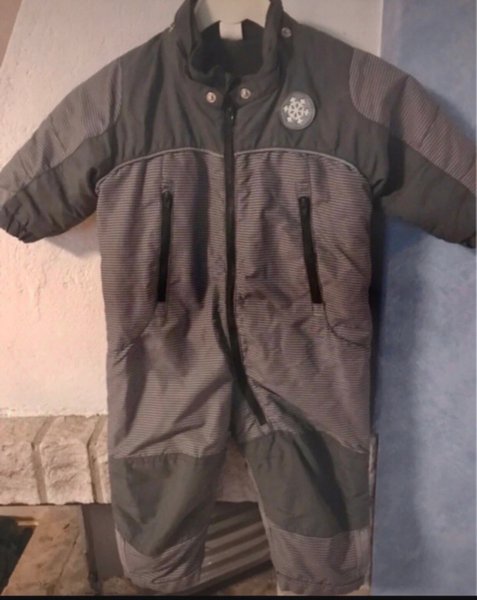 Overall med dragkedja framtill och två fickor med dragkedja. Overallen har förstärkta partier på knän och rumpa. En snöflinge-patch sitter på bröstet.strl 74
