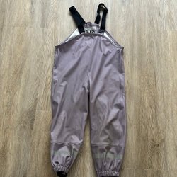 Byxorna har hängslen och resår i bensluten. Hällorna är hela och robusta i gummi.