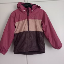 Säljer detta regnställ i storlek 158/164. Jackan är lila och i mörkblå färg. Byxorna är svarta.