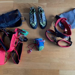 Traditionella knytblöjor (15 stycken), köpta i Tyskland. De är vita och har en rektangulär form med band som knyts runt barnet. Blöjan har två extra bitar tyg i mitten för ökad absorption. Ovanpå knytblöjan sätts en ullbyxa (4 stycken)