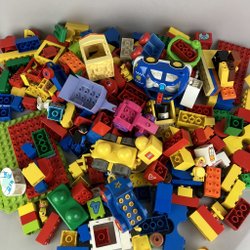 Ett set med blandade Lego Duplo bitar i olika färger och former. Perfekt för små barn att bygga och leka med. Ca 16st om jag räknat rätt från bilen.