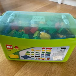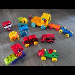 Ett stort set med Lego Duplo, inklusive fordon, figurer och diverse klossar. Perfekt för små barn att utveckla sin kreativitet och finmotorik.