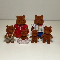 En samling Sylvanian Families björnar. Perfekt för lek och samling. Välanvända men mycket kvar att ge. Den ljusa björnen är av annan modell och har nött päls på vissa ställen, har en mjukare o mer skör kropp än de andra.