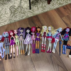 Tre Monster High dockor med tillbehör. Perfekt för samlare eller barn som älskar Monster High. Soffan ingår