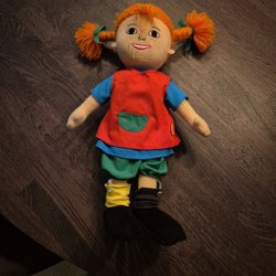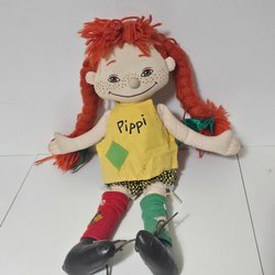 En Pippi Långstrump docka. Dockan är cirka 46 cm lång.