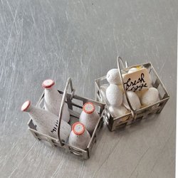 Handgjord miniatyr, paket i korg.
