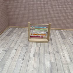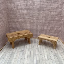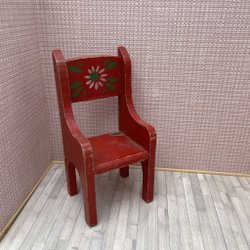 Säng och sängbord i trä till lite större dockskåp.