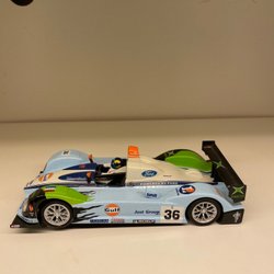 Bilbanebil av en Ford Focus rallybil. Den har nummer 4 och logotyper för Telefonica Movistar och Ford Focus. Den är tillverkad av TecniToys.