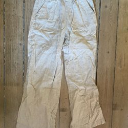 Byxorna har resår i midjan och justerbara benslut med dragsko. De har fickor framtill och bakfickor.