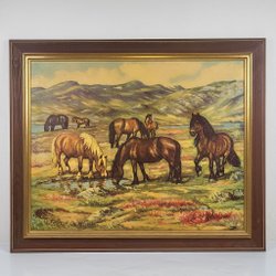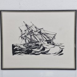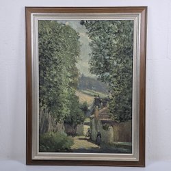 This is a print depicting a landscape with trees and water. It is signed in the lower corners.