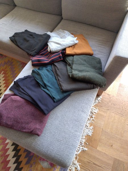 Ett parti med flera tröjor i olika färger i storlek M. Använt skick men okej. Passar mig inte längre, blivit tjock. Merino ull dom flesta. J lindberg några.