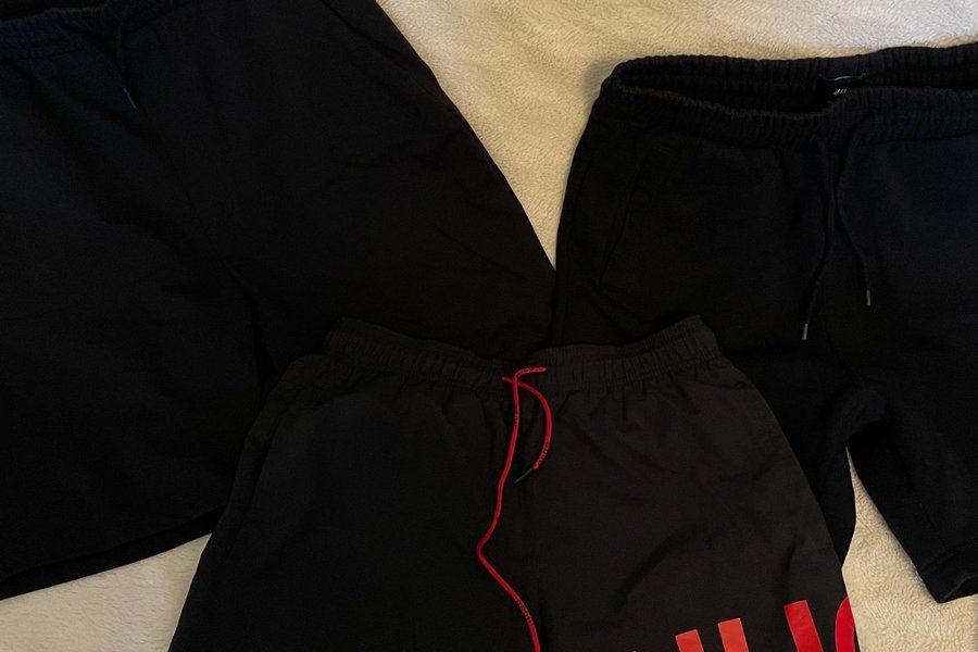 Shorts stl S. Två mjukis shorts, SOC och HM, ett par badshorts Hugo Boss