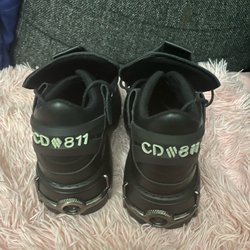 Ett par svarta byxor från Cipo & Baxx med flera fickor och dragkedjor. Byxorna har en dekorativ design med detaljer som stjärnor och dödskallar. På bakfickorna finns en CB-logotyp.