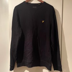 Finns ett svart streck vid höger byxben, går enkelt bort.