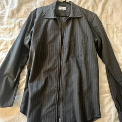 Brun skjorta med långa ärmar och knappar framtill. Skjortan har en klassisk krage och manschetter.