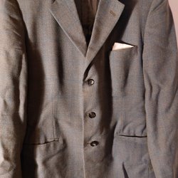 Grå kavaj med två knappar fram och tre knappar på varje ärmslut. Kavajen har fickor på båda sidor. Storlek 48