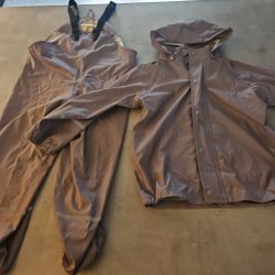 Ett set med byxor och väst. Byxorna har fickor bak och fram. Västen har knappar fram. Väst 58. Byxor 154