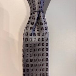Grå slips med ett rutigt mönster i ljusgrått och mörkgrått längd ca 150 cm