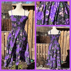 Solklänning i stretchig polyester. Dragkedja i ryggen. Inbyggd bh framtill. Bra skick.
