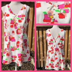 Mått omkrets: byst-102, midja-96, höft-110, längd-82, aa-38, armhål-44, ärm-45cm